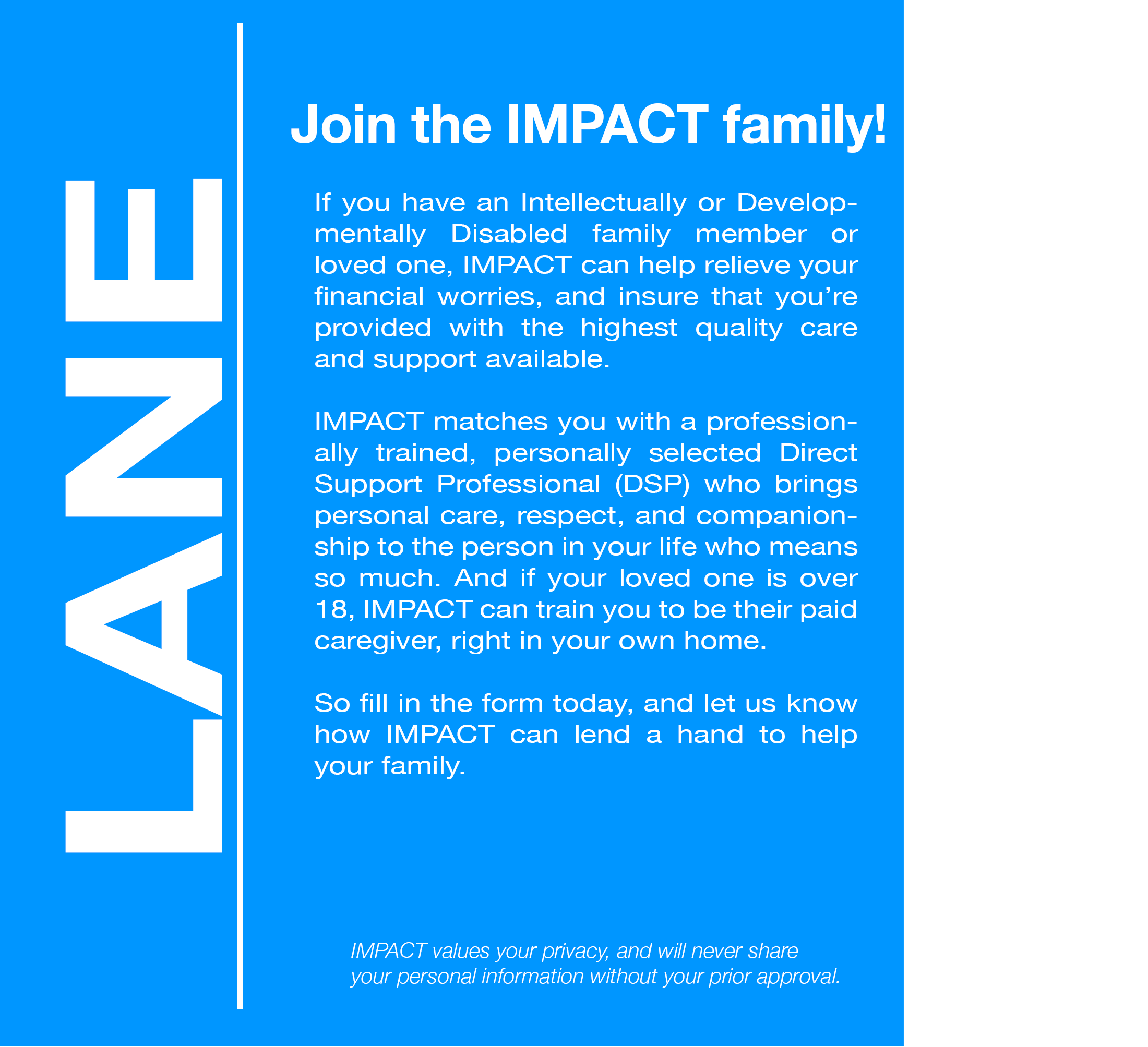 So fill in the form today, and let us know how IMPACT can lend a hand to help your family.